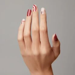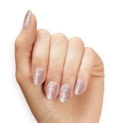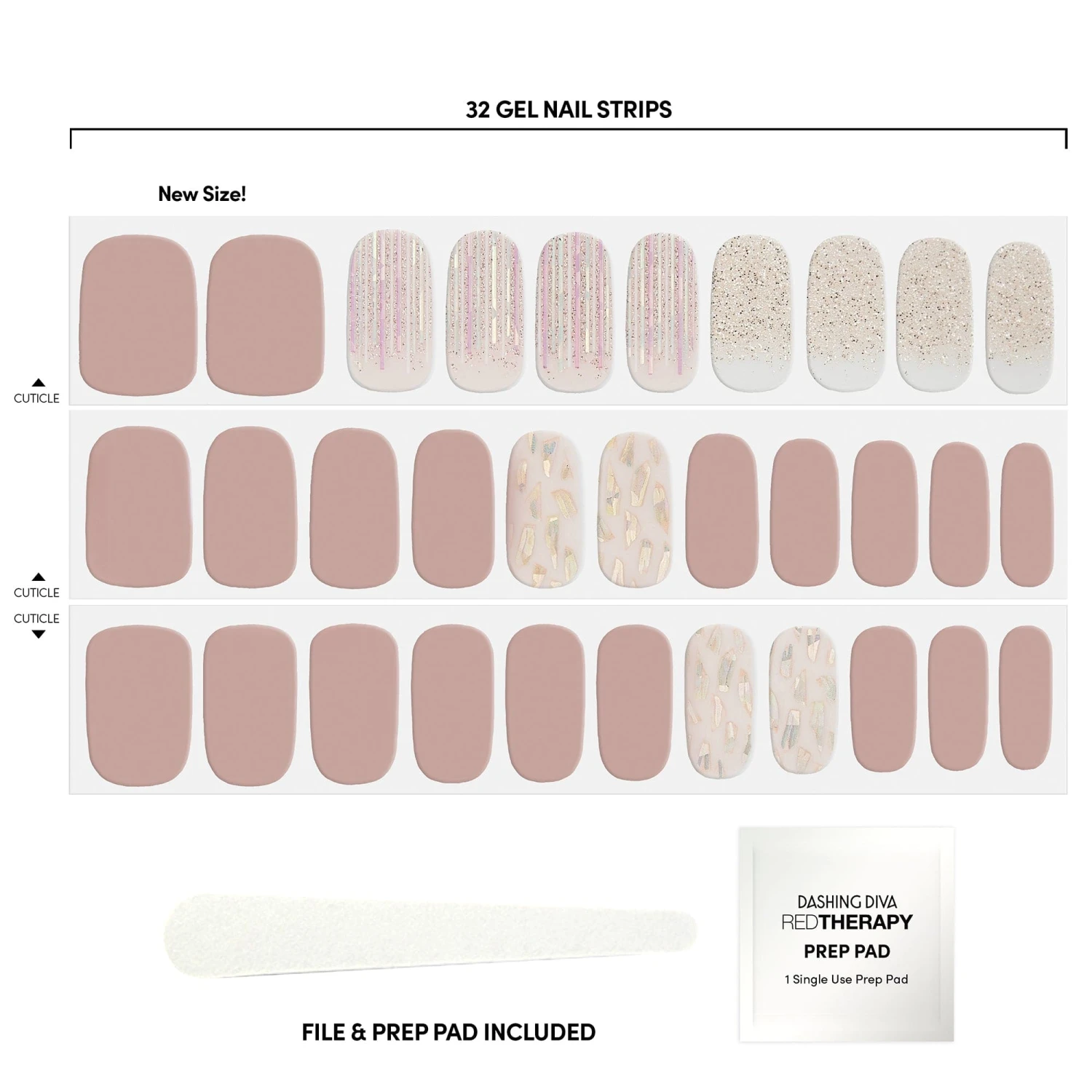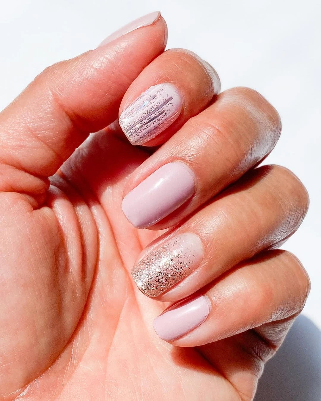Dusty rose gel strips featuring silver glitter & holographic line accents will have you basking in the afterglow of all its glamour.