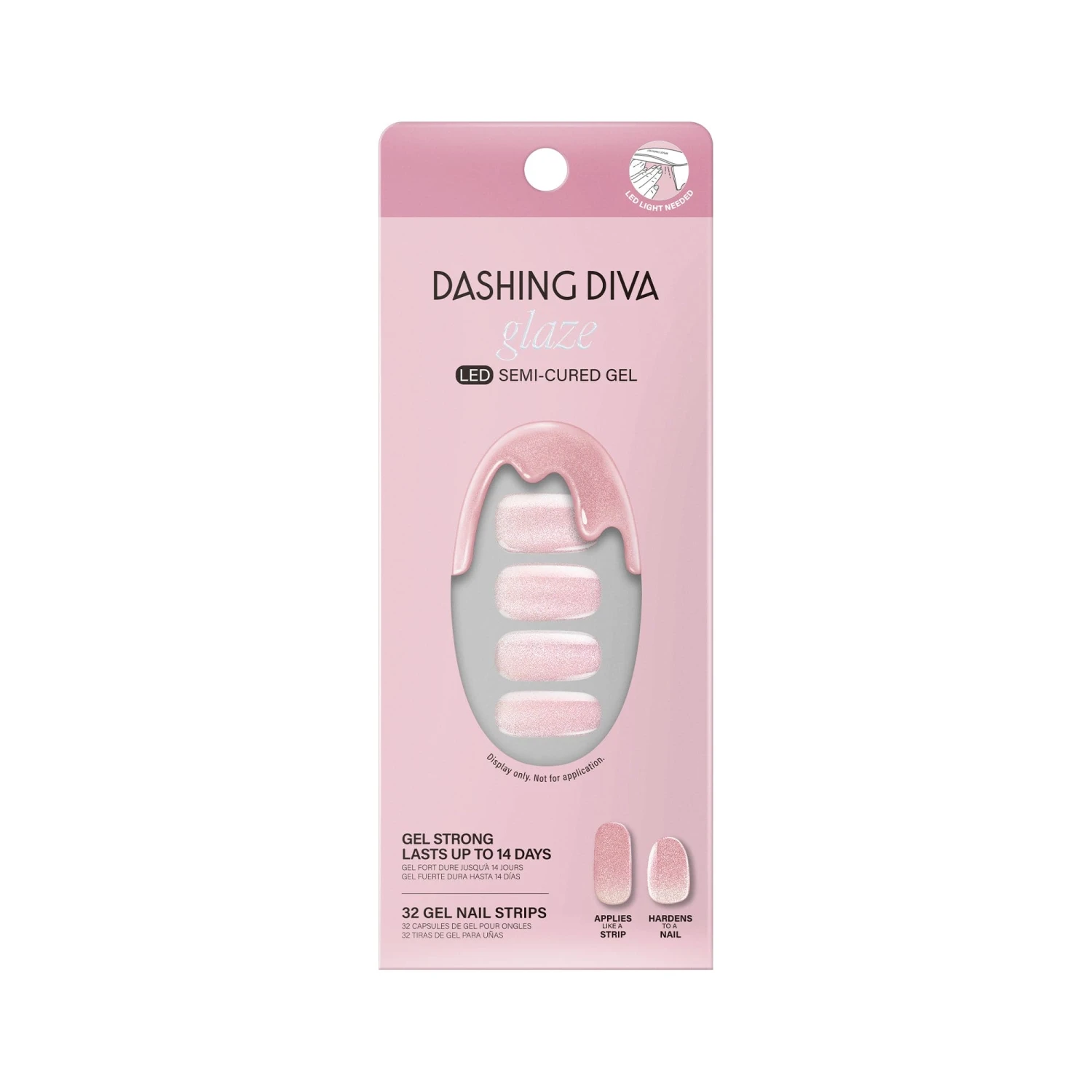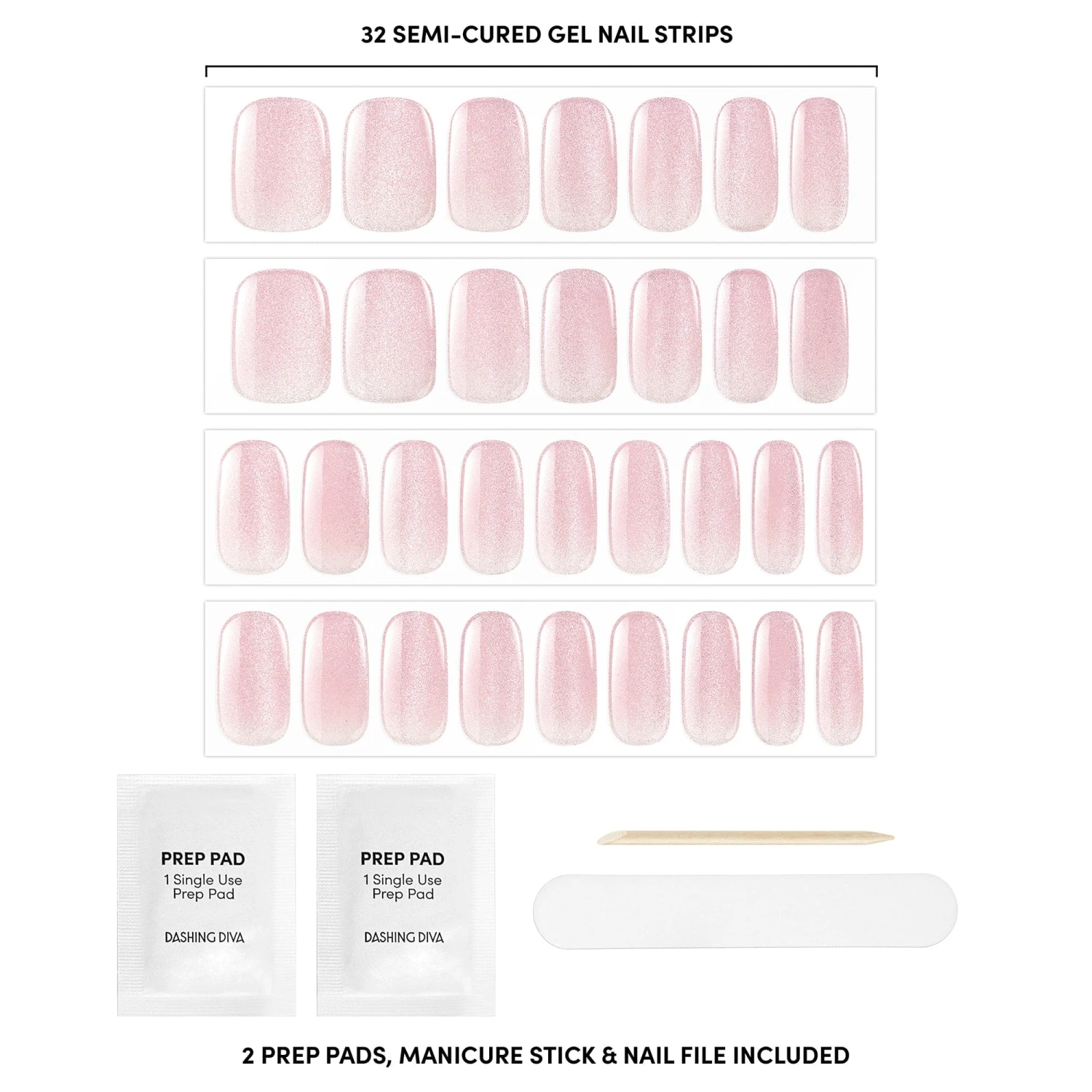 It’s showtime! Semi-cured soft pink ombré gel nail strips featuring a velvet shimmer finish with mega volume & maximum shine.