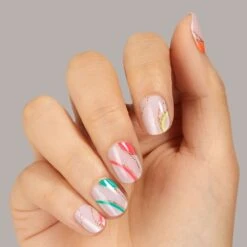 Peachy pink gel nail strips featuring vintage floral details with a double gel formula for an ultra smooth finish.