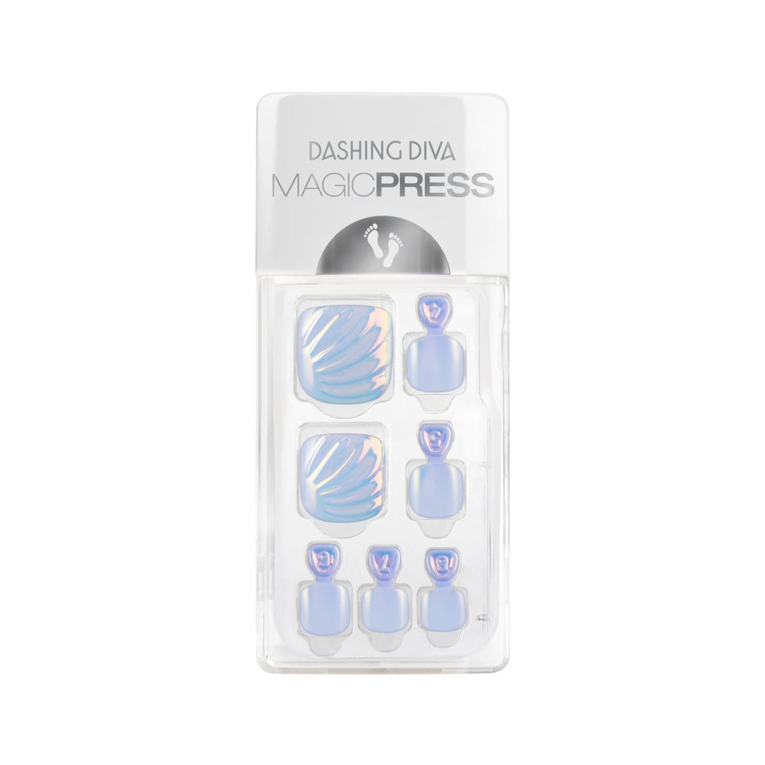 Press-on pedicure gel nails with easy application and comfortable wear. A summer Beach House essential, this blue and pink iridescent pedicure belongs on your toes.