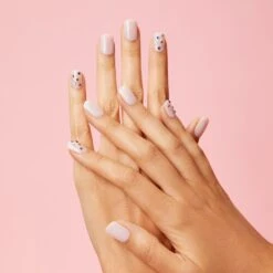 Cranberry red gel nail strips featuring red & silver ombré glitter, 3D rose gold studs, and leafy accents with a glossy, high-shine finish.
