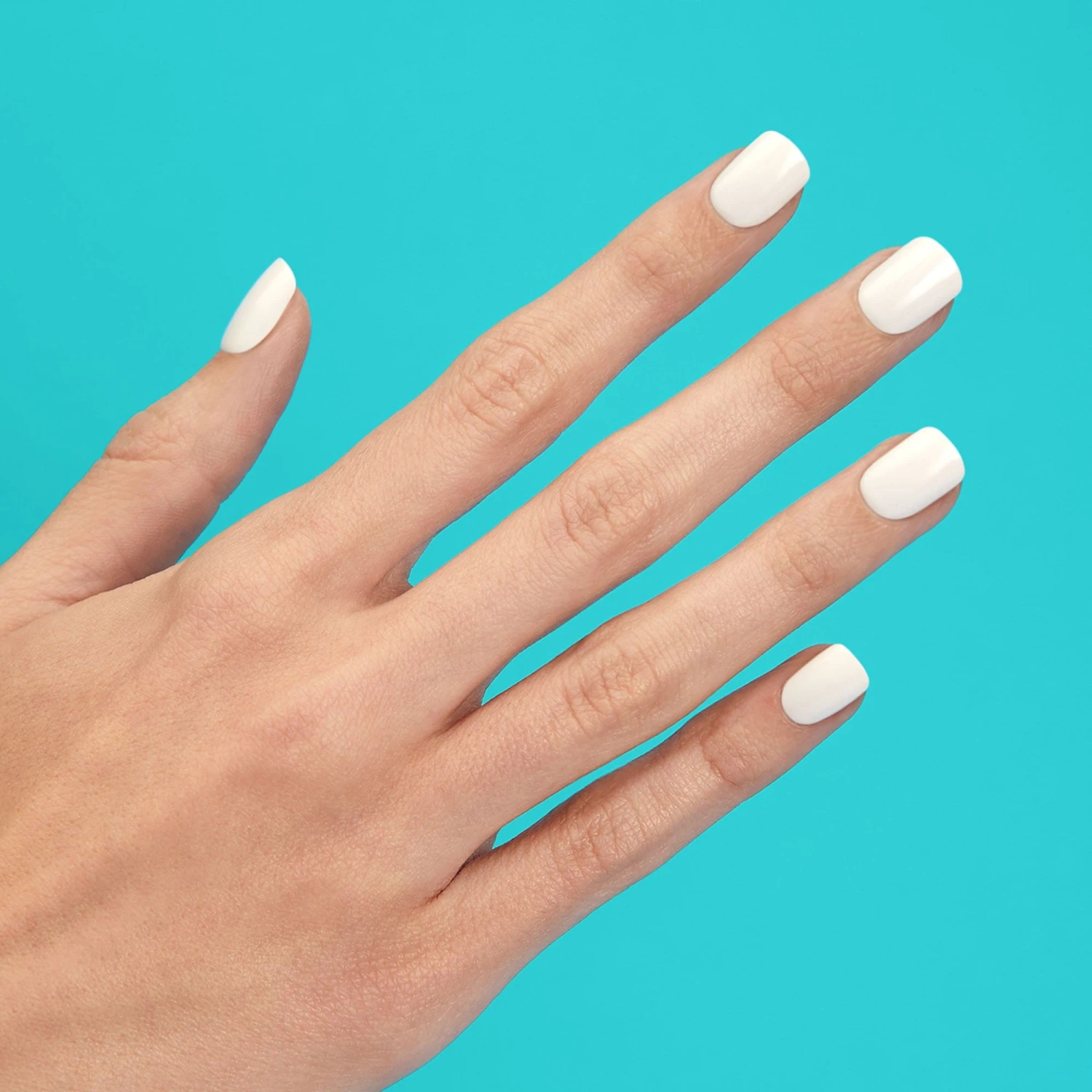Rich, milky, and creamy; This off-white shade is a staple for every season. Medium length, square shape, glossy finish white press-on gel nails.