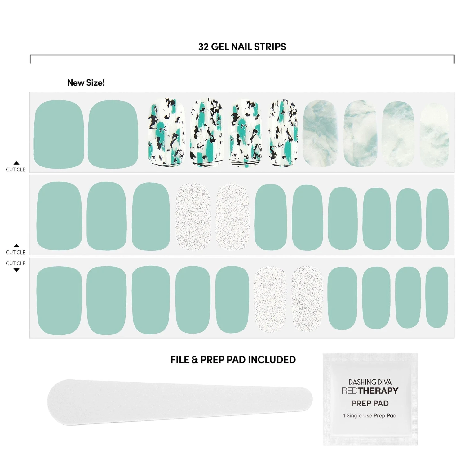 Light aqua strips featuring champagne glitter, tie dye, and abstract painted accents – Glistening like precious desert quartz!
