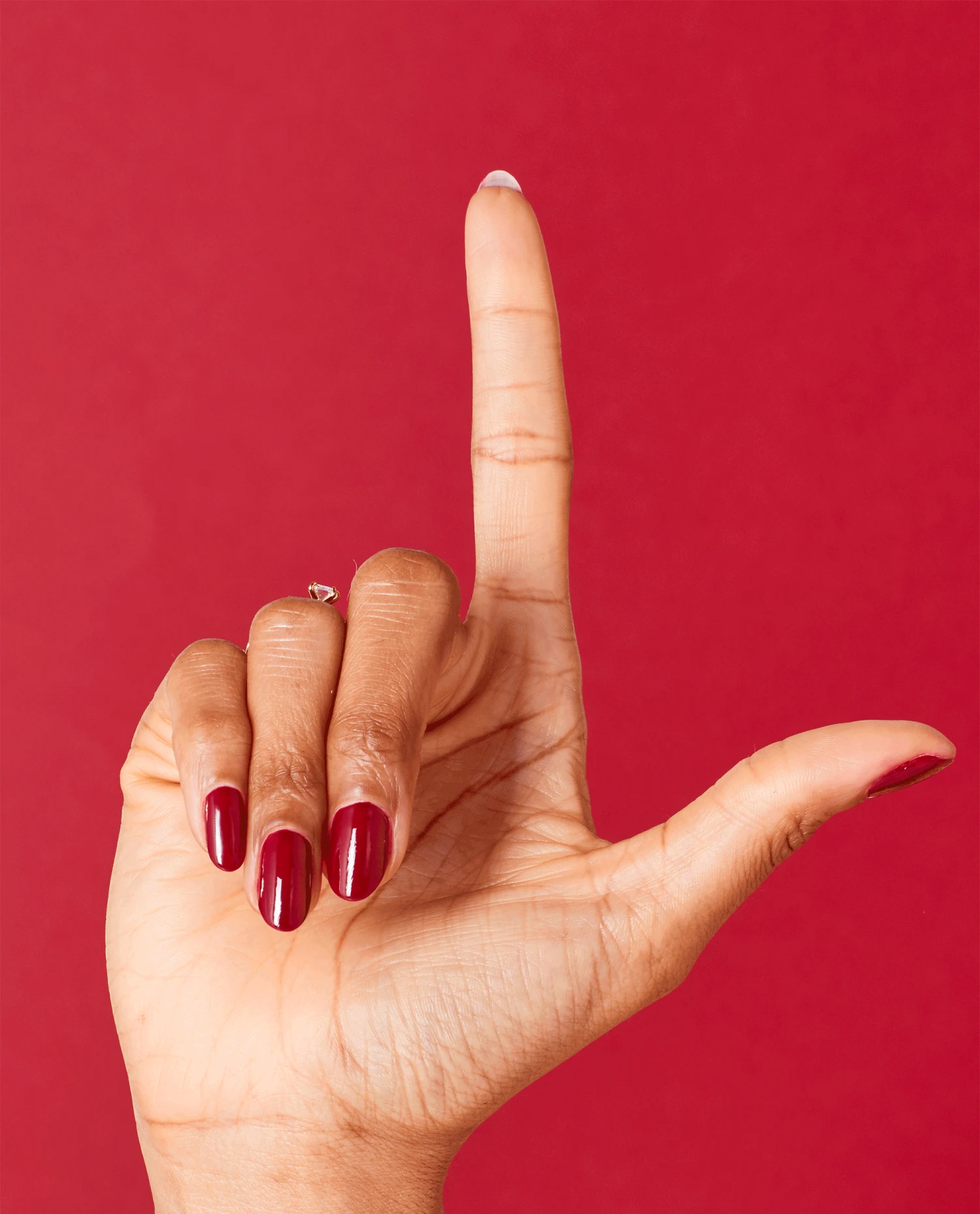 Immediately, dip the finger into the Color Powder at a 45-degree angle and tap off the excess dipping powder. Repeat on remaining fingers.