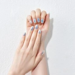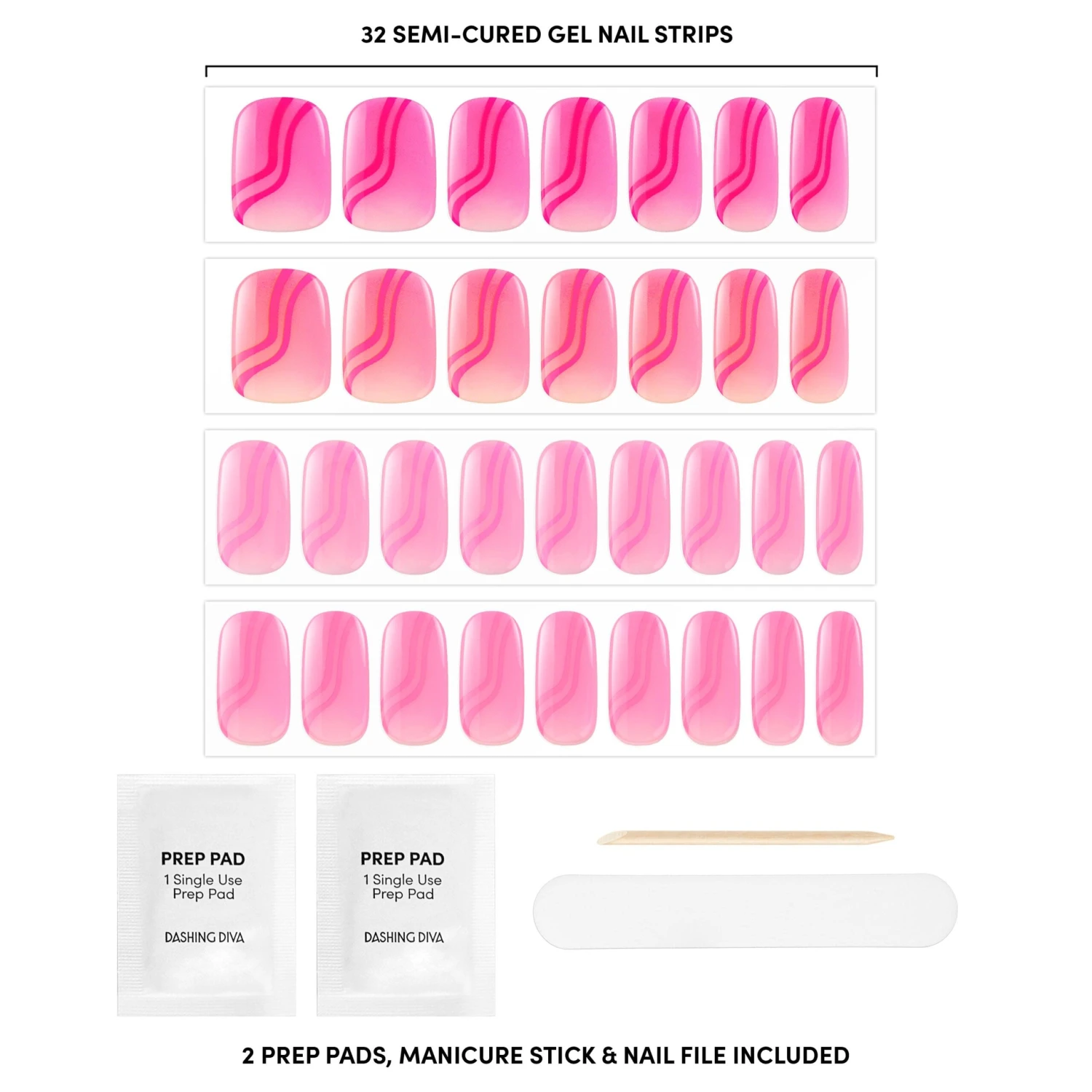Semi-cured, multi-shade, pink gel nail strips featuring wavy line art & ombré accents with mega volume & maximum shine.