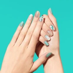 For the diva who loves to make a statement! Red nail strips featuring an iridescent nude base with red French tips and swirl designs with a glossy, high-shine finish.