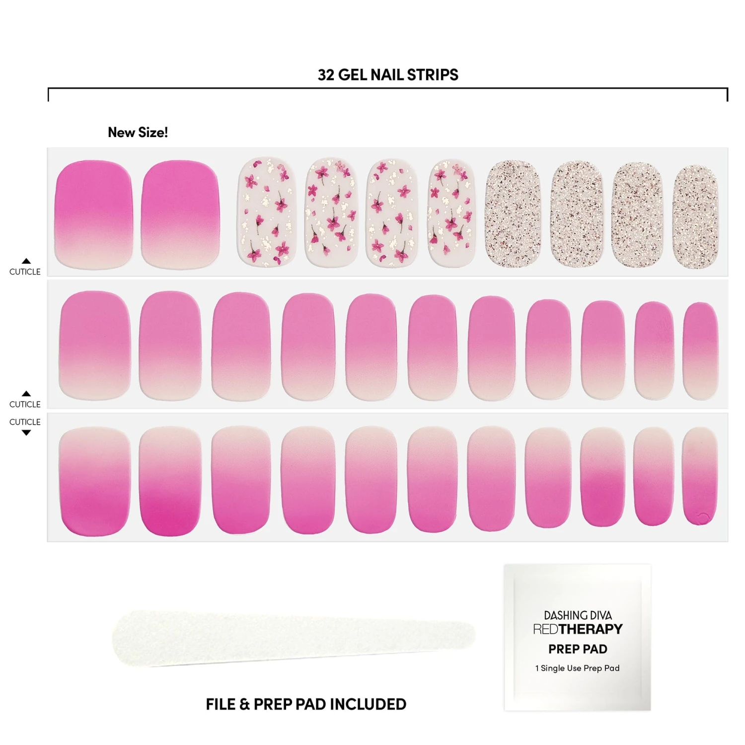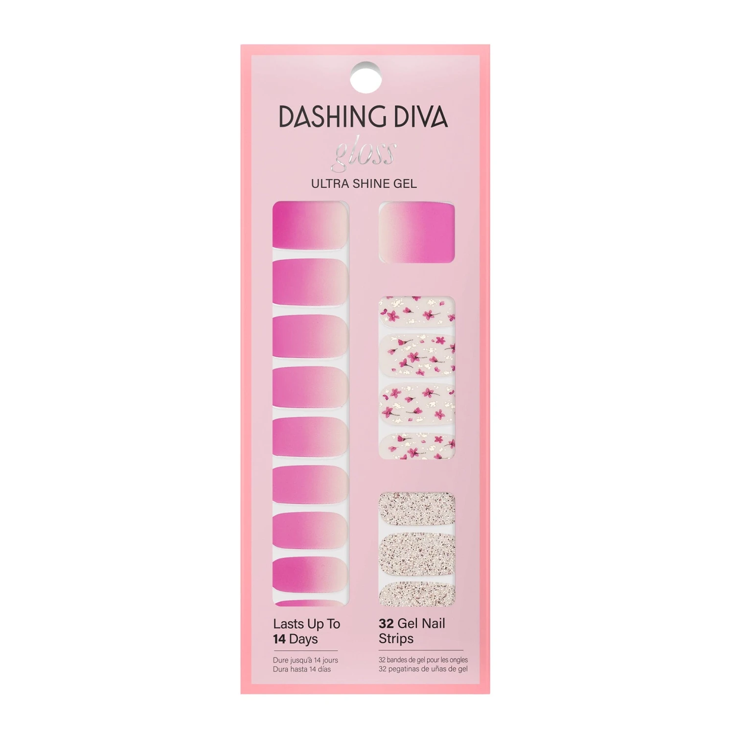 The grass is always greener where you water it. Hot pink ombré & sheer nude gel nail strips featuring pressed flowers, gold foil, and iridescent glitter with a glossy, high-shine finish.