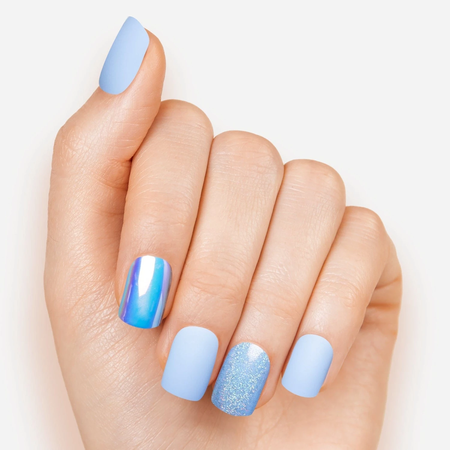 Periwinkle blue in finishes like matte, shimmer and holographic make Good Vibes possible.