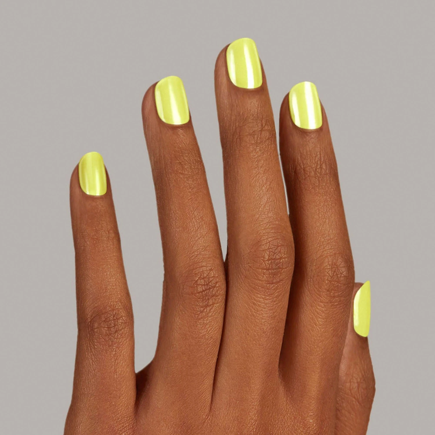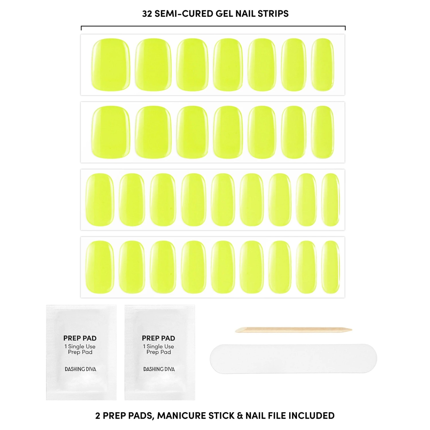 Semi-cured lime green gel nail strips featuring a shimmery chrome finish with mega volume & maximum shine.
