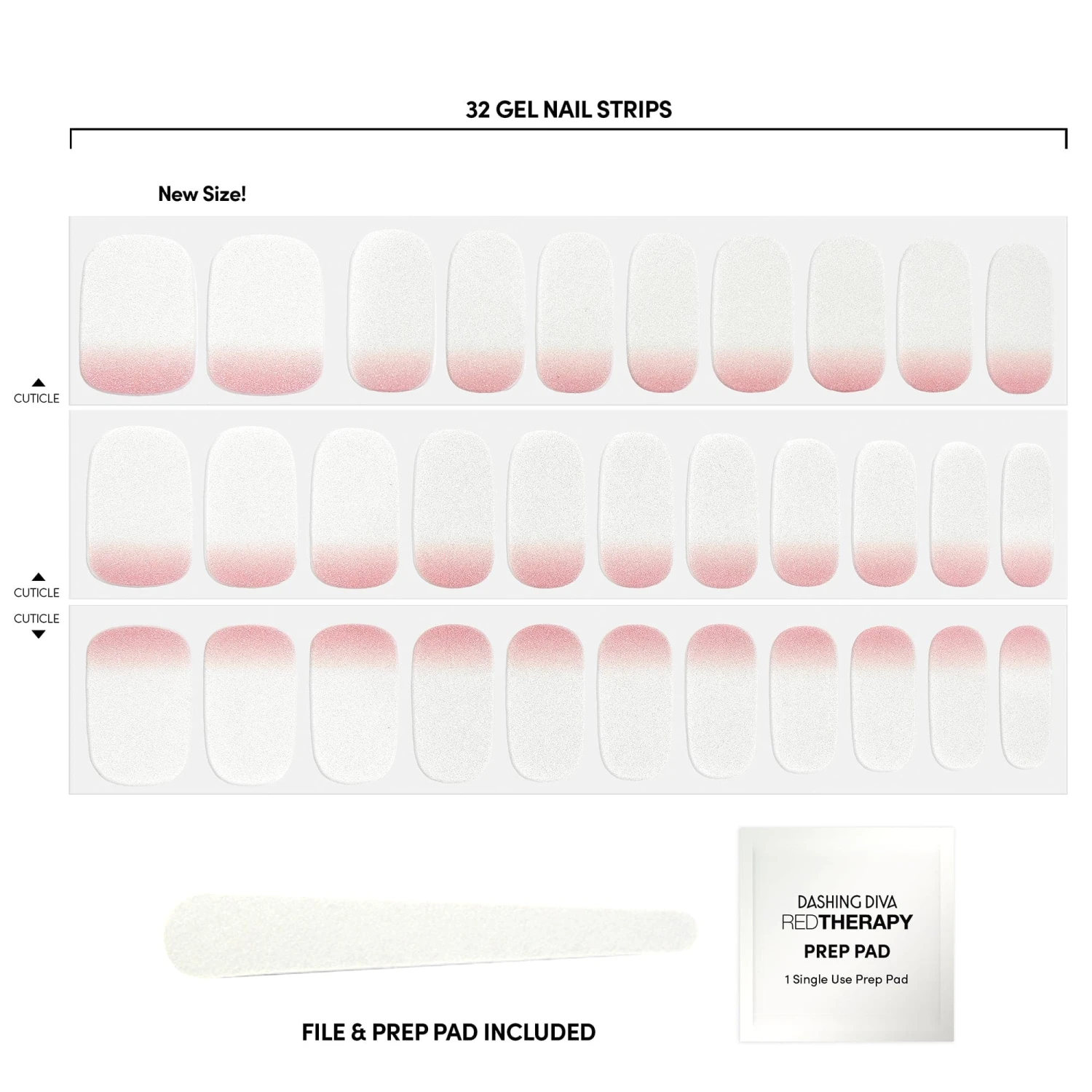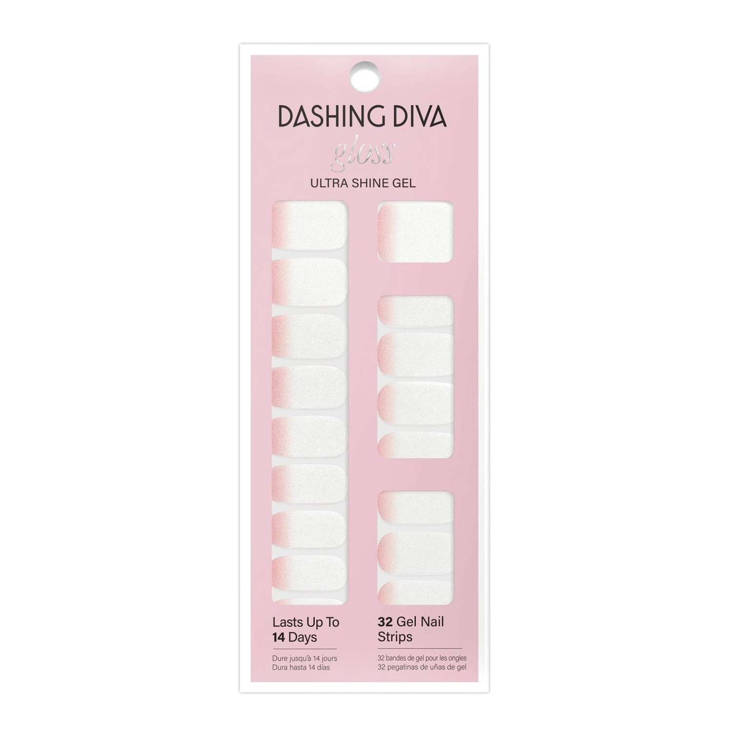 She who wears a mini skirt can take over the world. White-to-pink ombré gel nail strips featuring a shimmer effect with a glossy, high-shine finish.