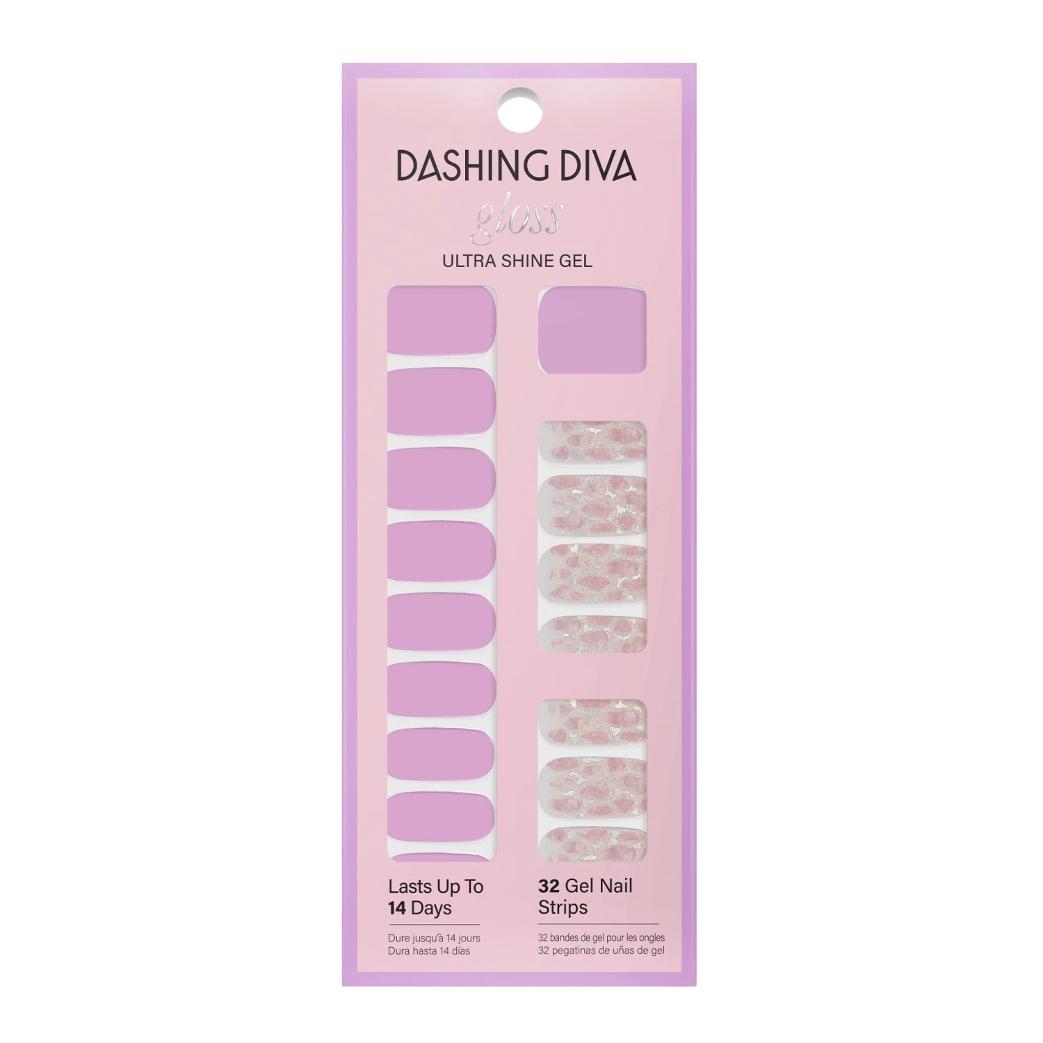 Oh my, what do we have here?! Soft purple gel nail strips featuring mosaic accents and bronze glitter with a glossy, high-shine finish.