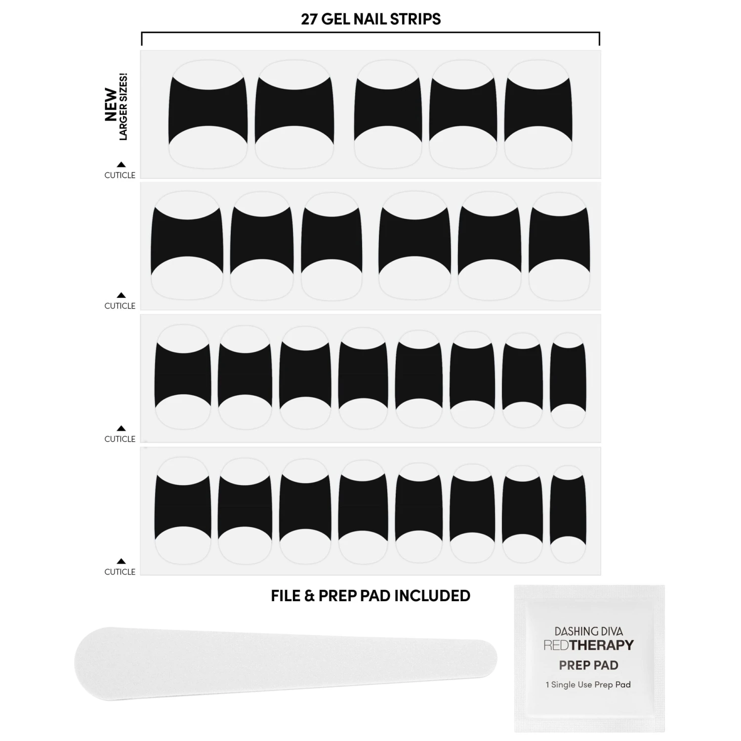 The nighttime version of your classic french manicure – Transparent gel strips featuring an intense black french tip with a glossy, high-shine finish.