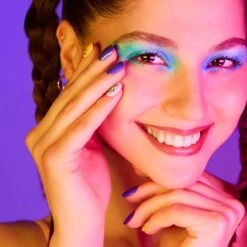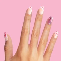 A sweet little addition to any glam-filled Easter basket. Glittered pink & iridescent white gel nail strips featuring 3D Easter egg line art and multicolored bunny accents with a glossy, high-shine finish.