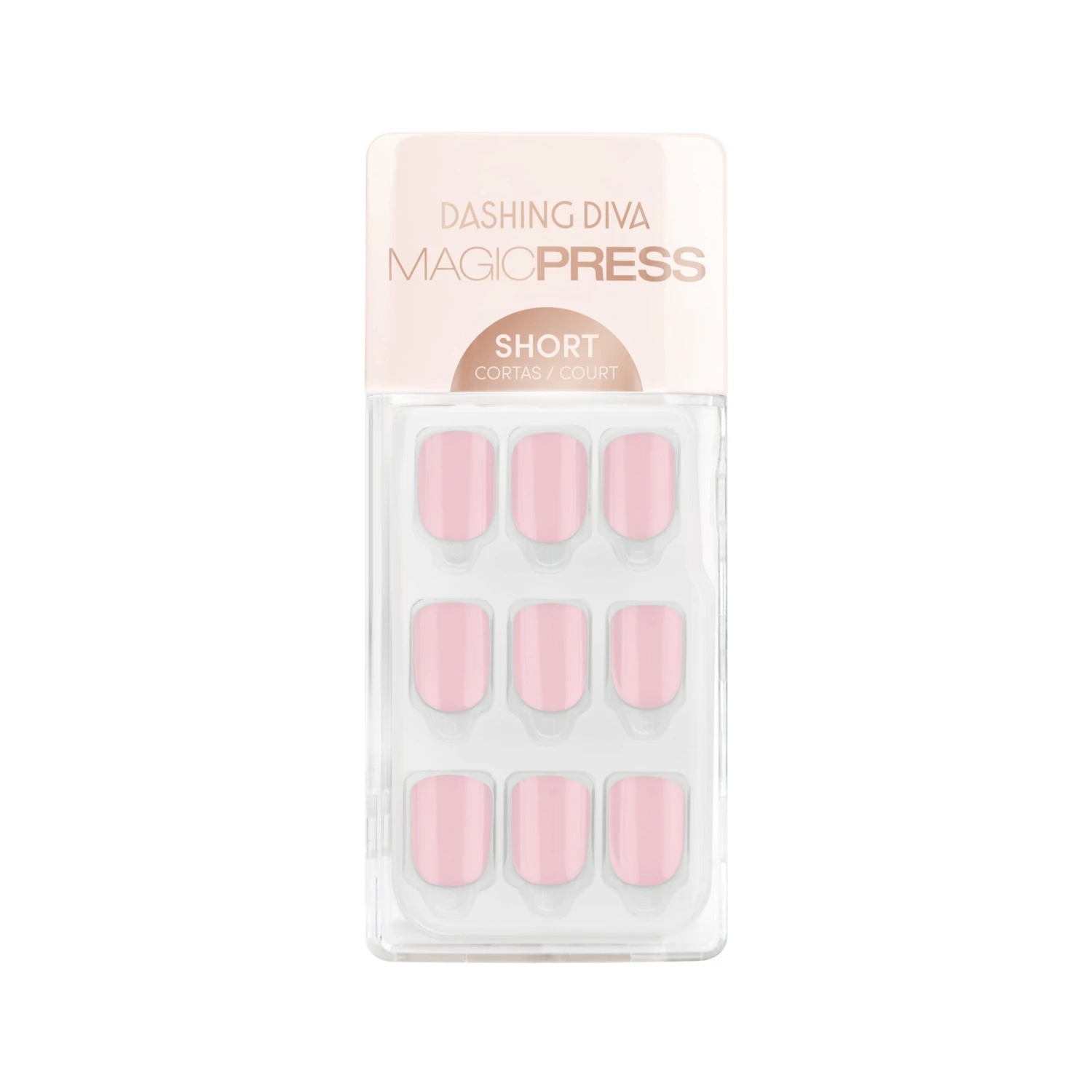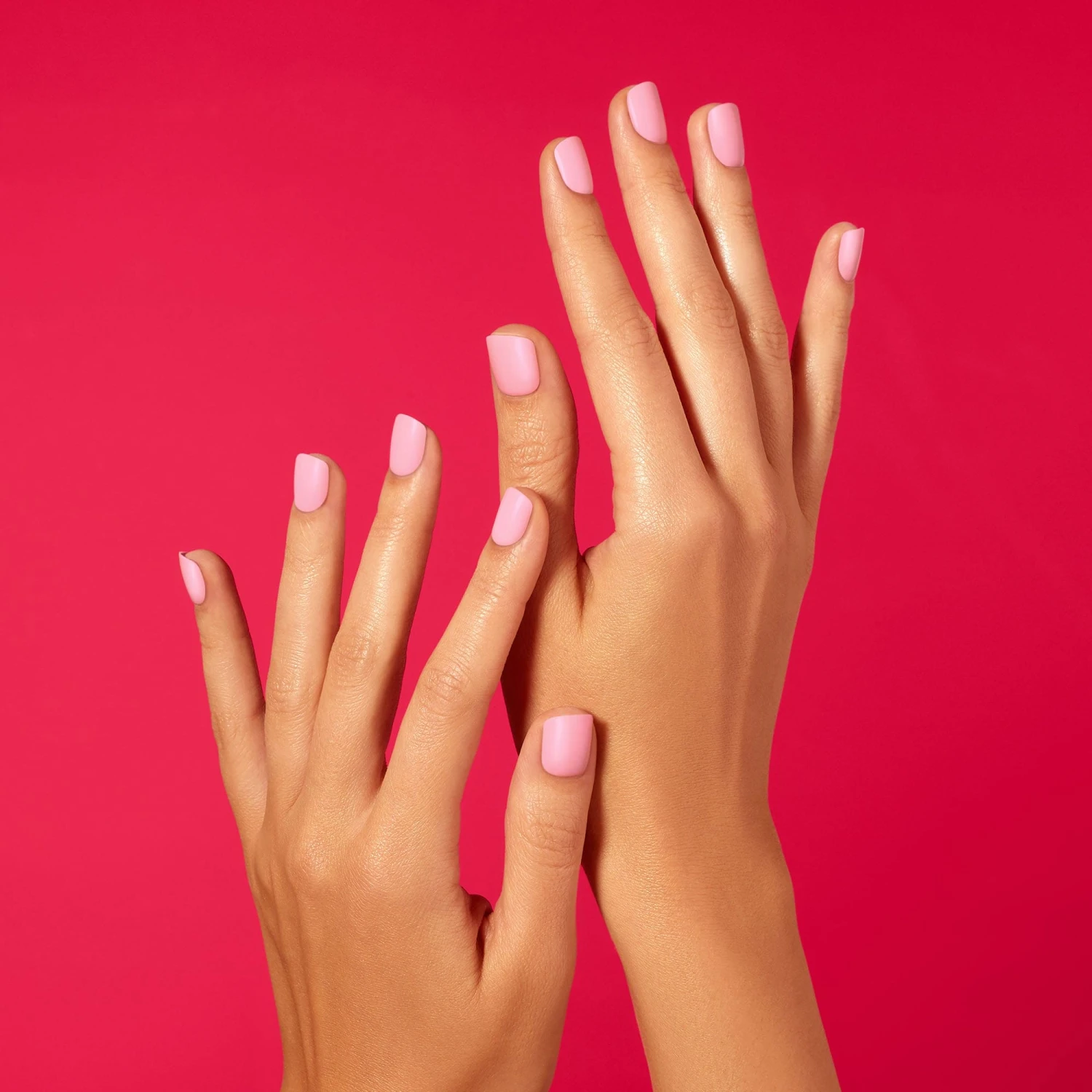 Light pink with enough intensity to ruffle some feathers. Short length, square shape, glossy finish pink press-on gel nails.