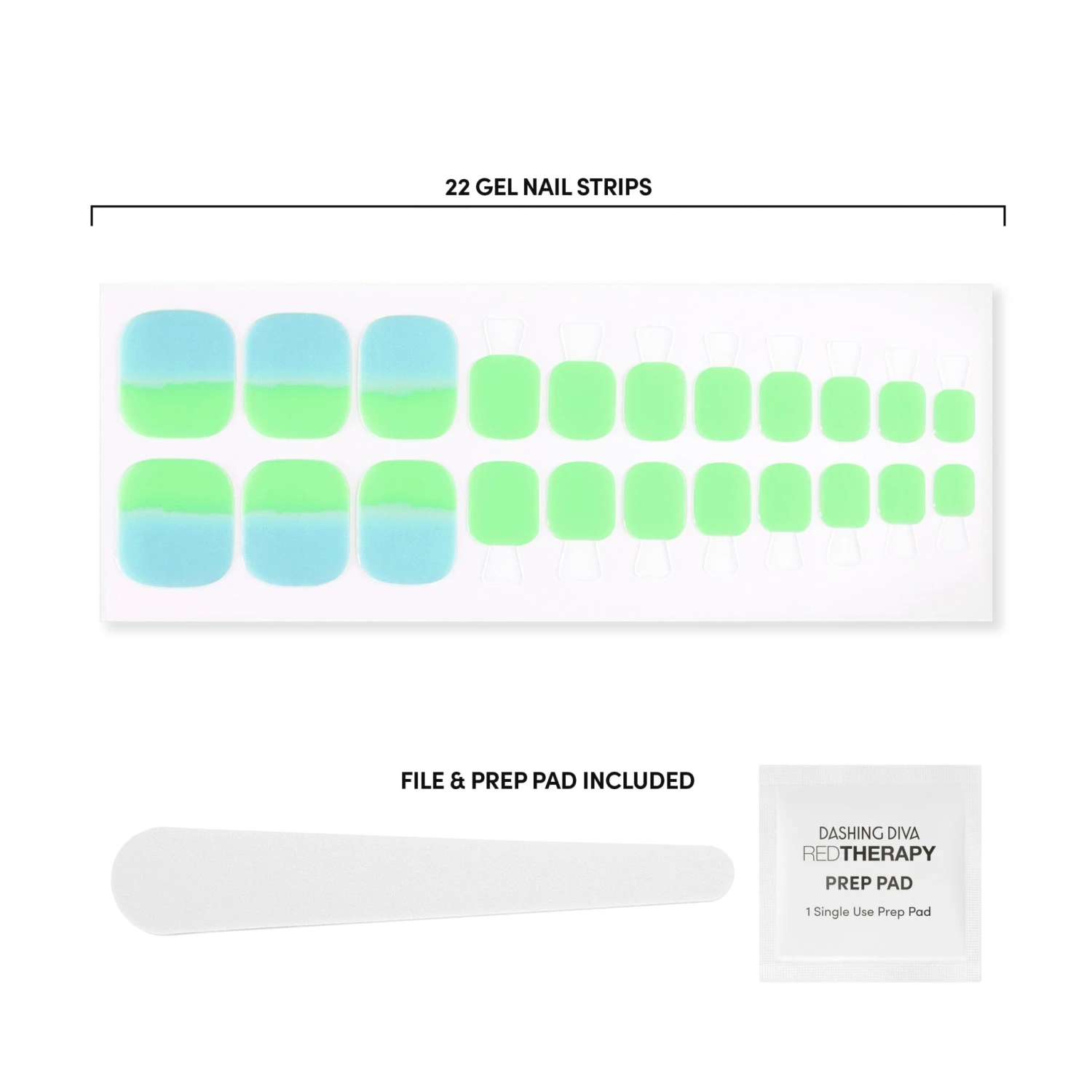 Light blue & neon yellow gel pedicure strips with a double gel formula for an ultra-smooth finish.