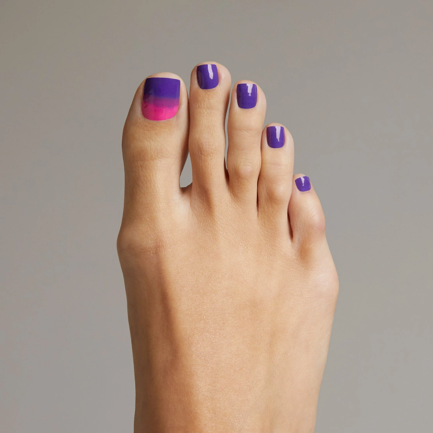 Hot pink & purple ombré gel pedicure strips with a double gel formula for an ultra-smooth finish.