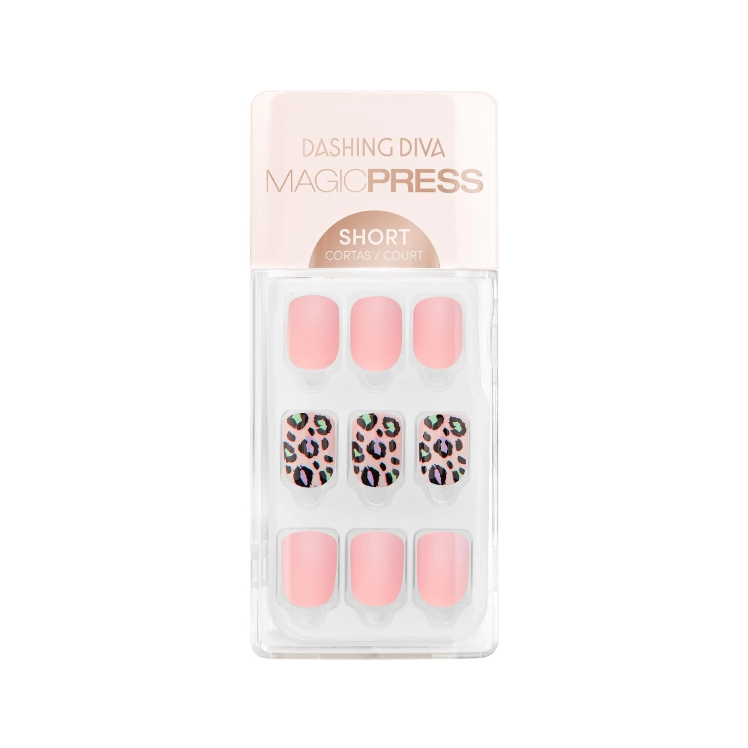 Short length, square shape, glossy & matte finish press-on gel nails. If you favor glam on the go, this animal print press-on manicure is your new Ride or Die.