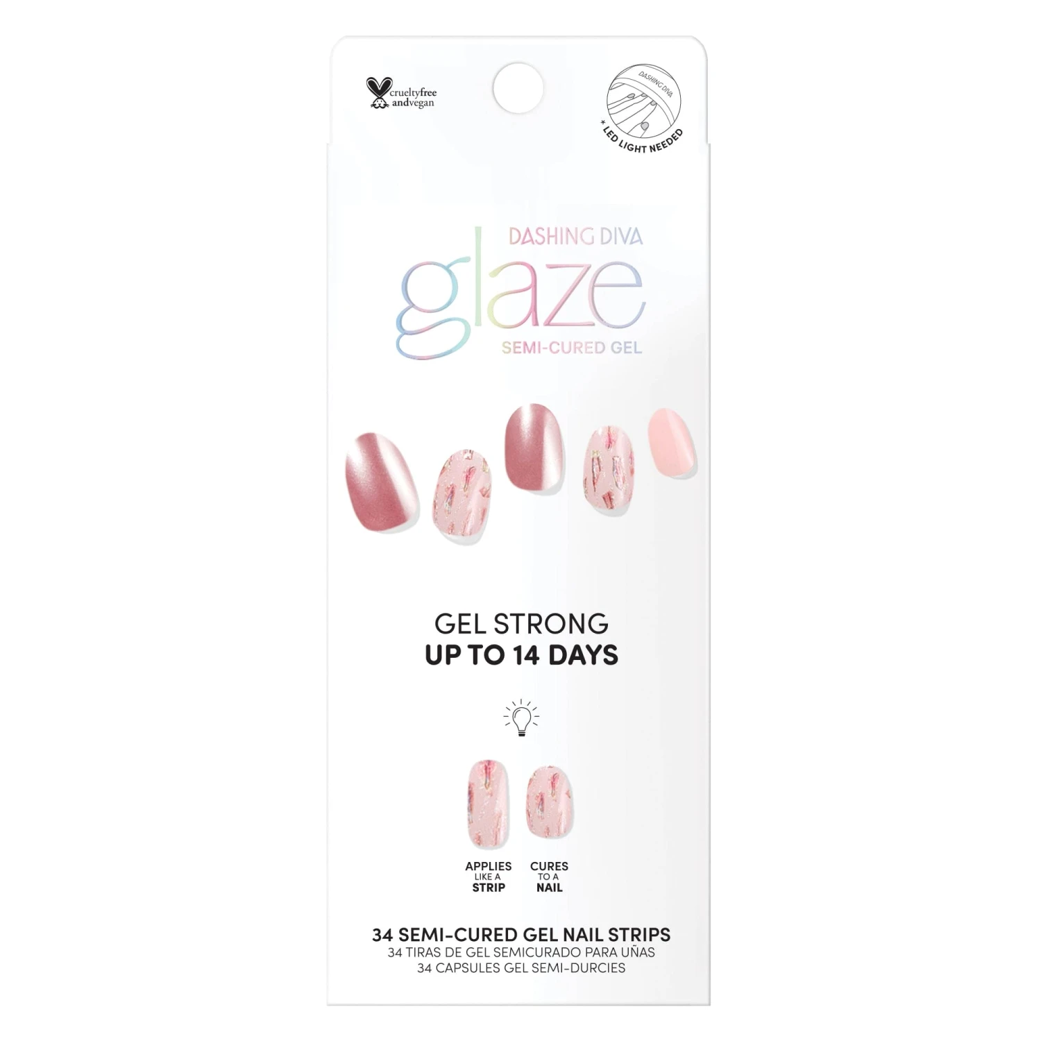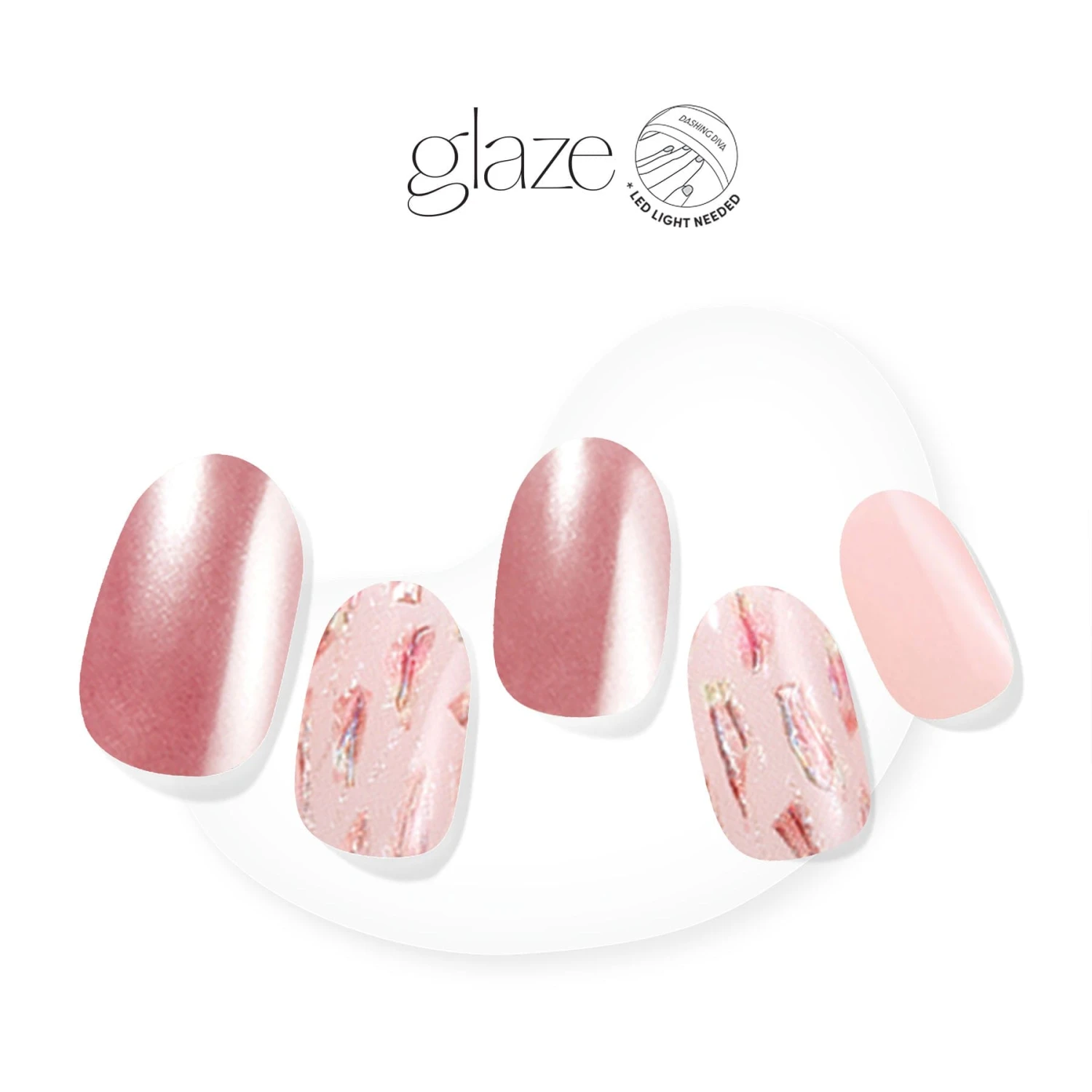 Stop and smell the roses in this semi-cured gel nail set. Featuring a metallic pink base shade with cool soft pink and holographic shattered glass accents.