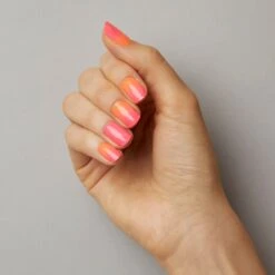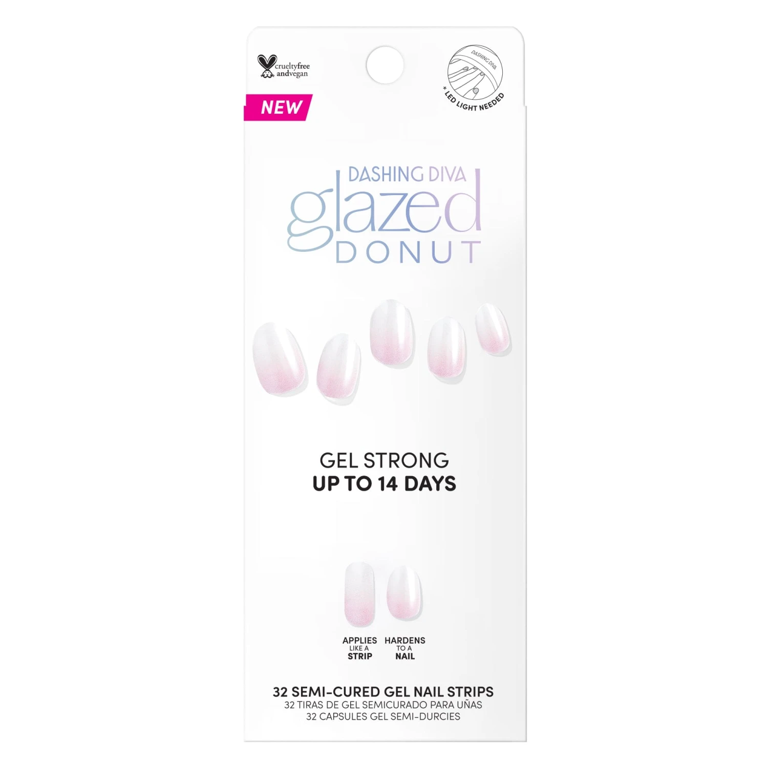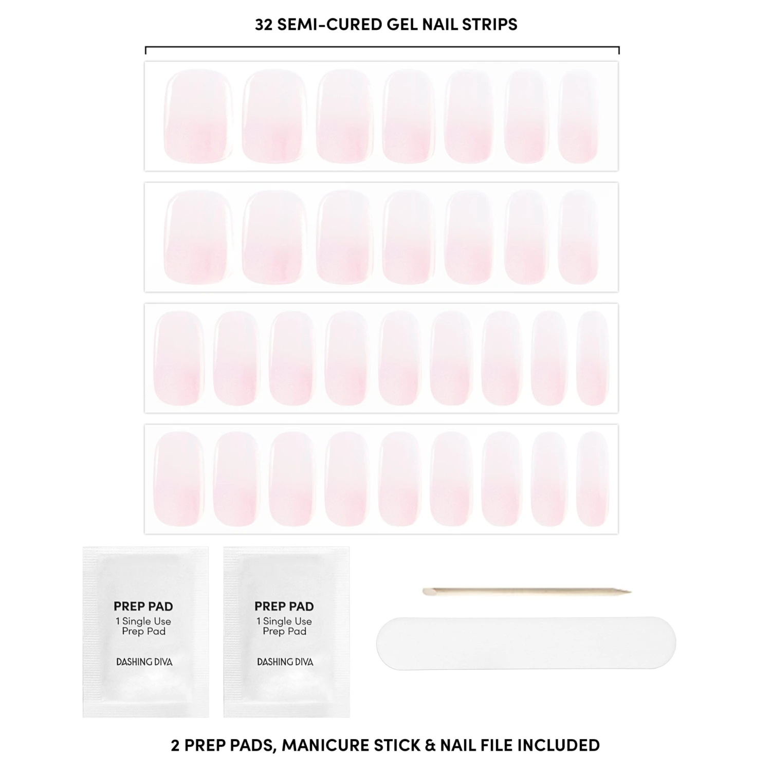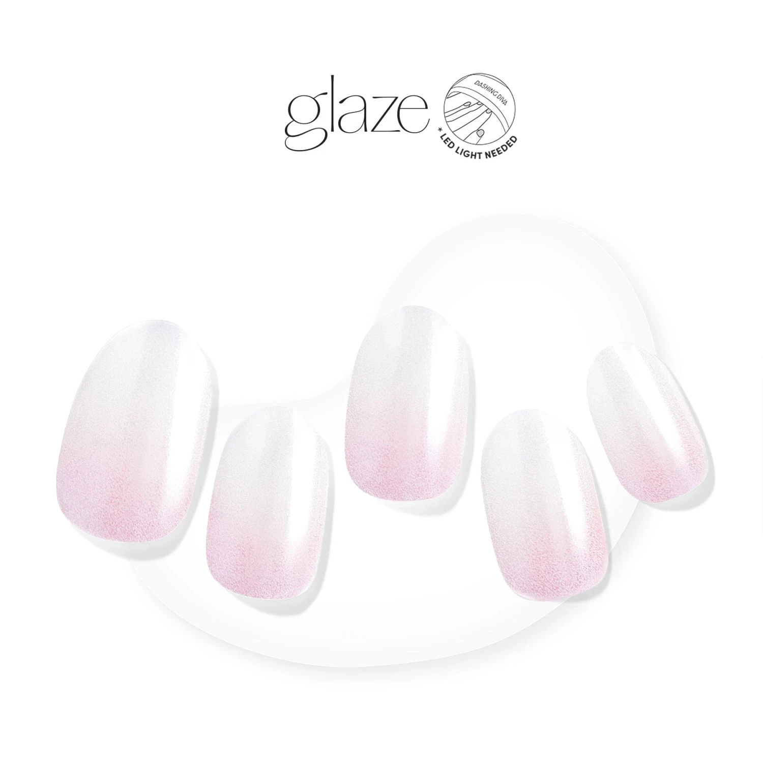 Semi-cured pink to white ombre French gel nail strips featuring a shimmery chrome finish with mega volume & maximum shine.