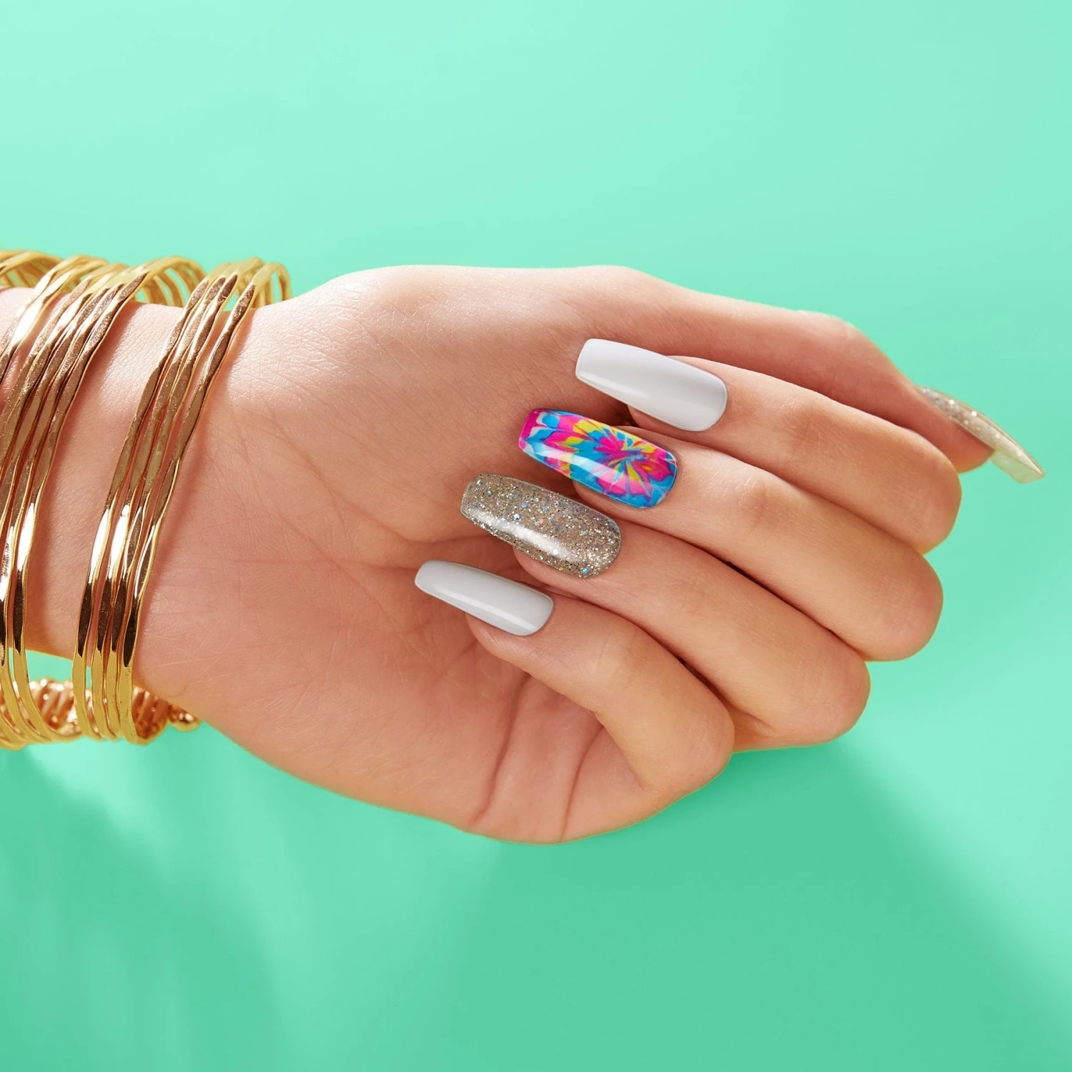Vibrant, tie-dye nails that are sure to take you back in time. Feel like a million bucks instantly with these bright pops of color.