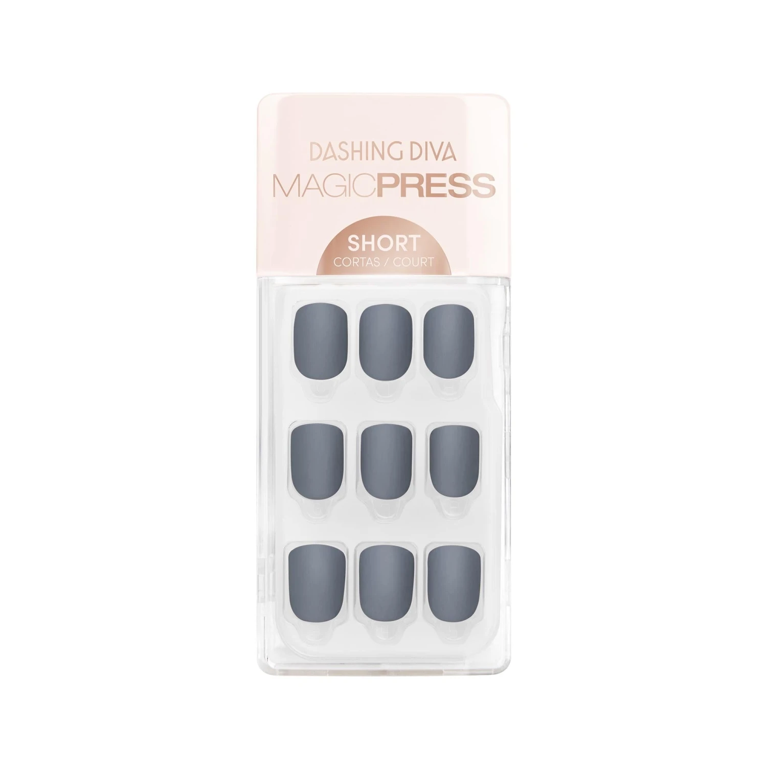 Short length, square shape, matte finish press-on gel nails. Complimentary for cool and warm skin tones alike, standout in slate no matter who you are.