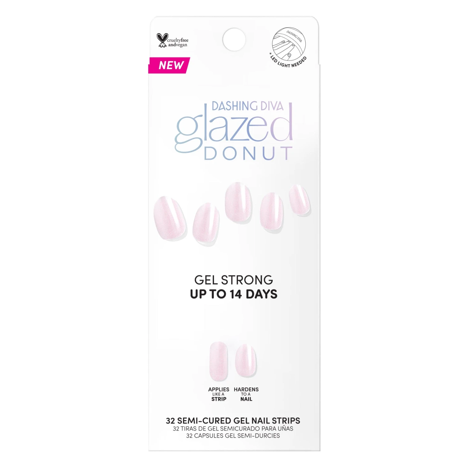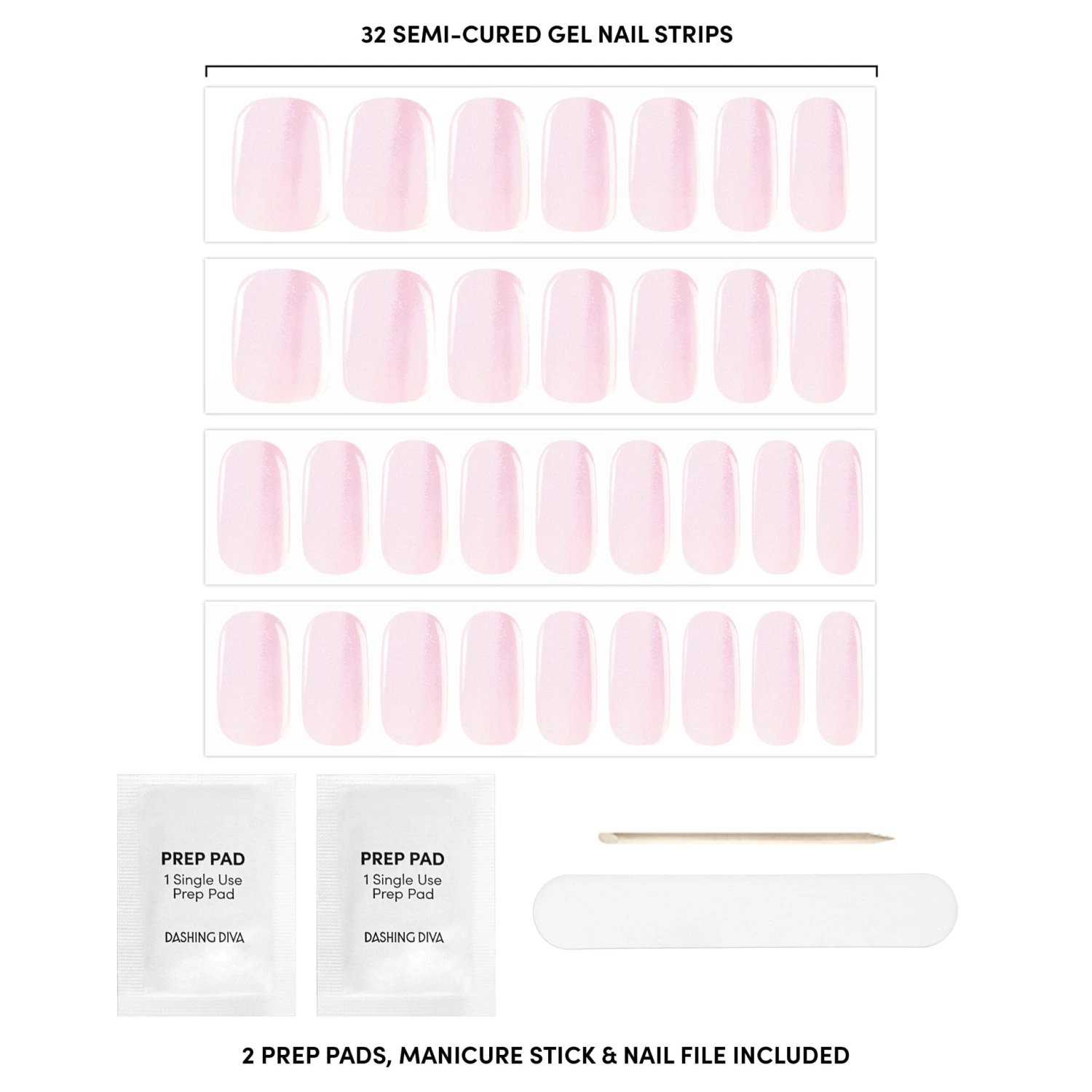 Semi-cured soft pink gel nail strips featuring a shimmery chrome finish with mega volume & maximum shine.