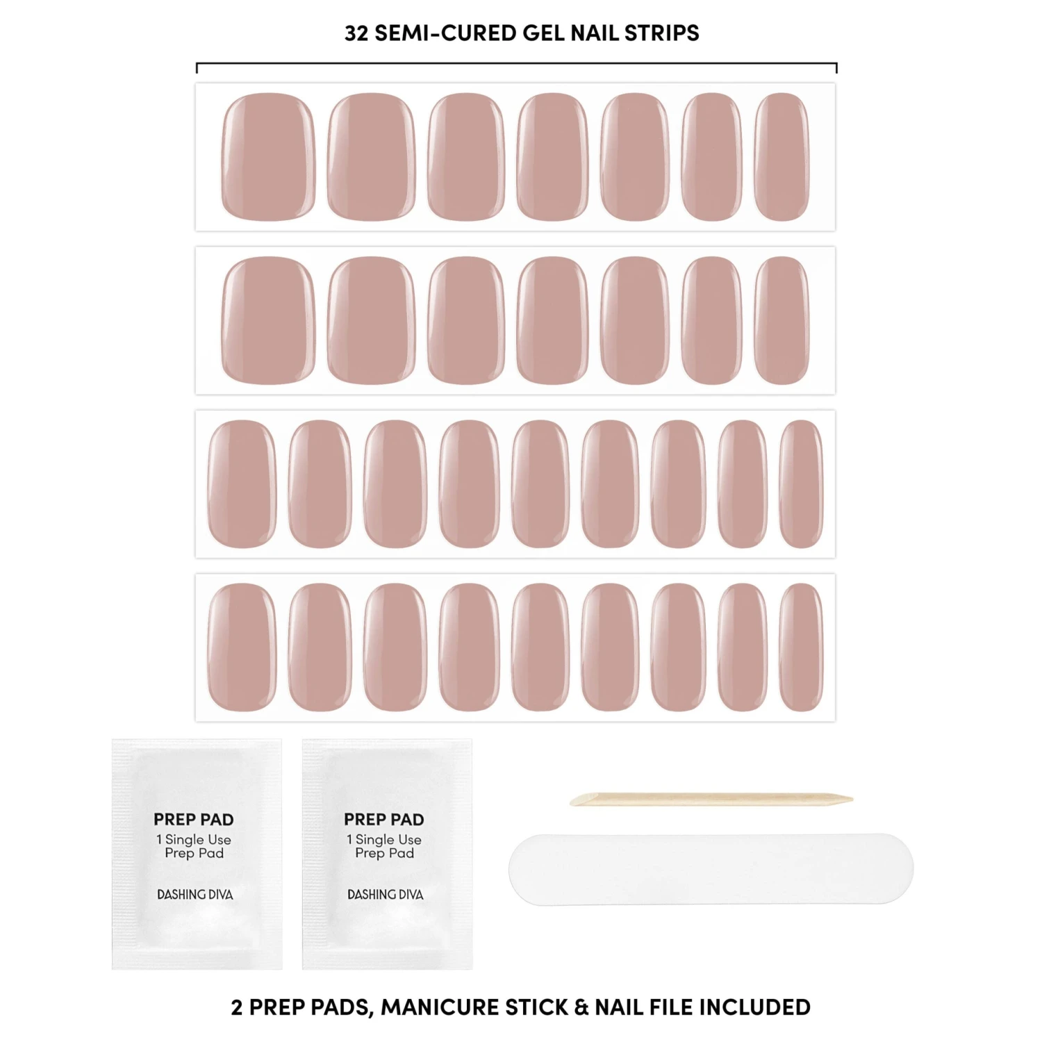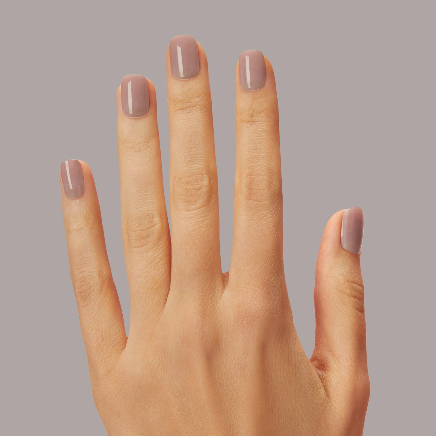Semi-cured cool mauve gel nail strips with mega volume & an opaque finish.
