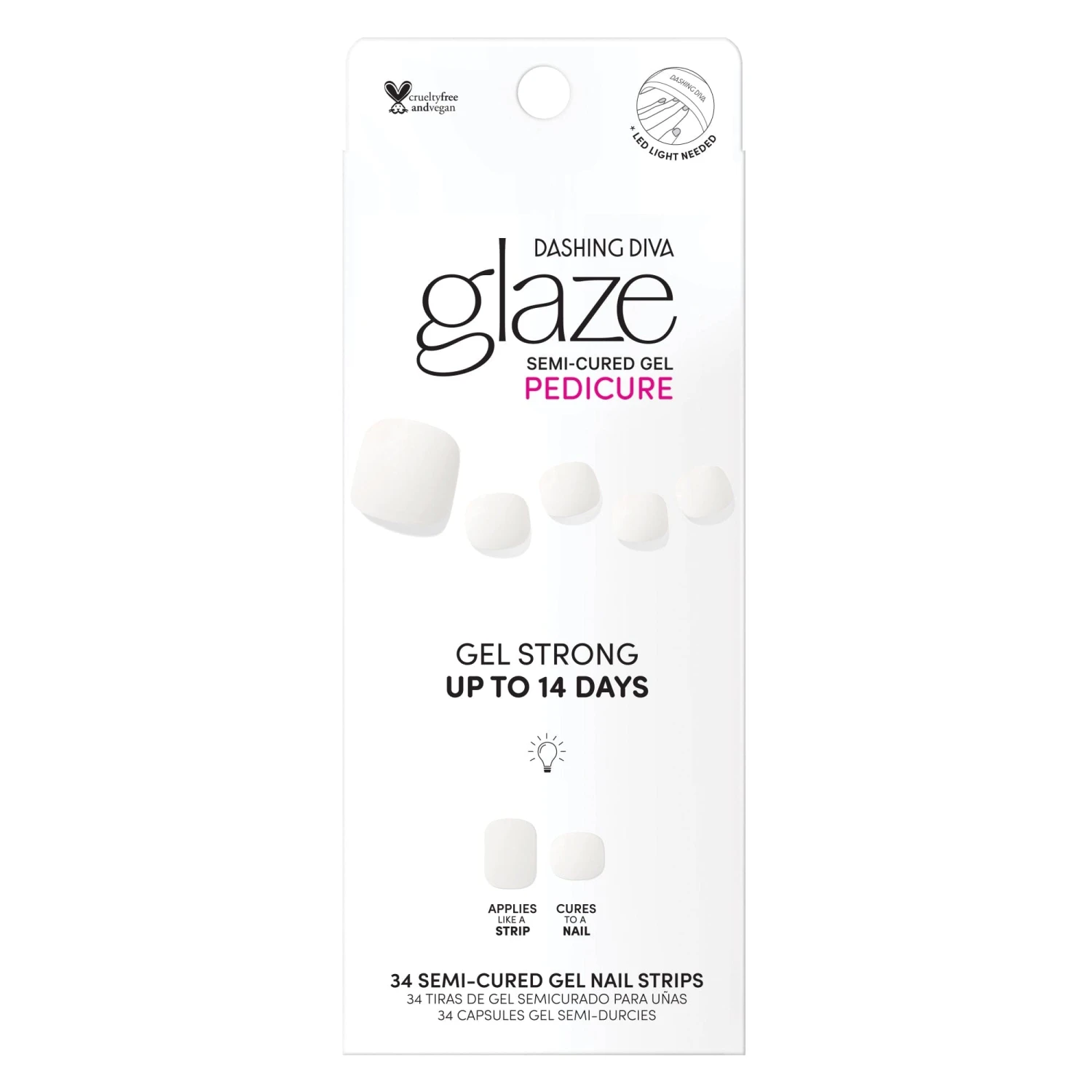 The classic simplicity of a white pedicure revolutionized into a semi-cured strip. Semi-cured true white gel pedicure strips with mega volume & maximum shine.