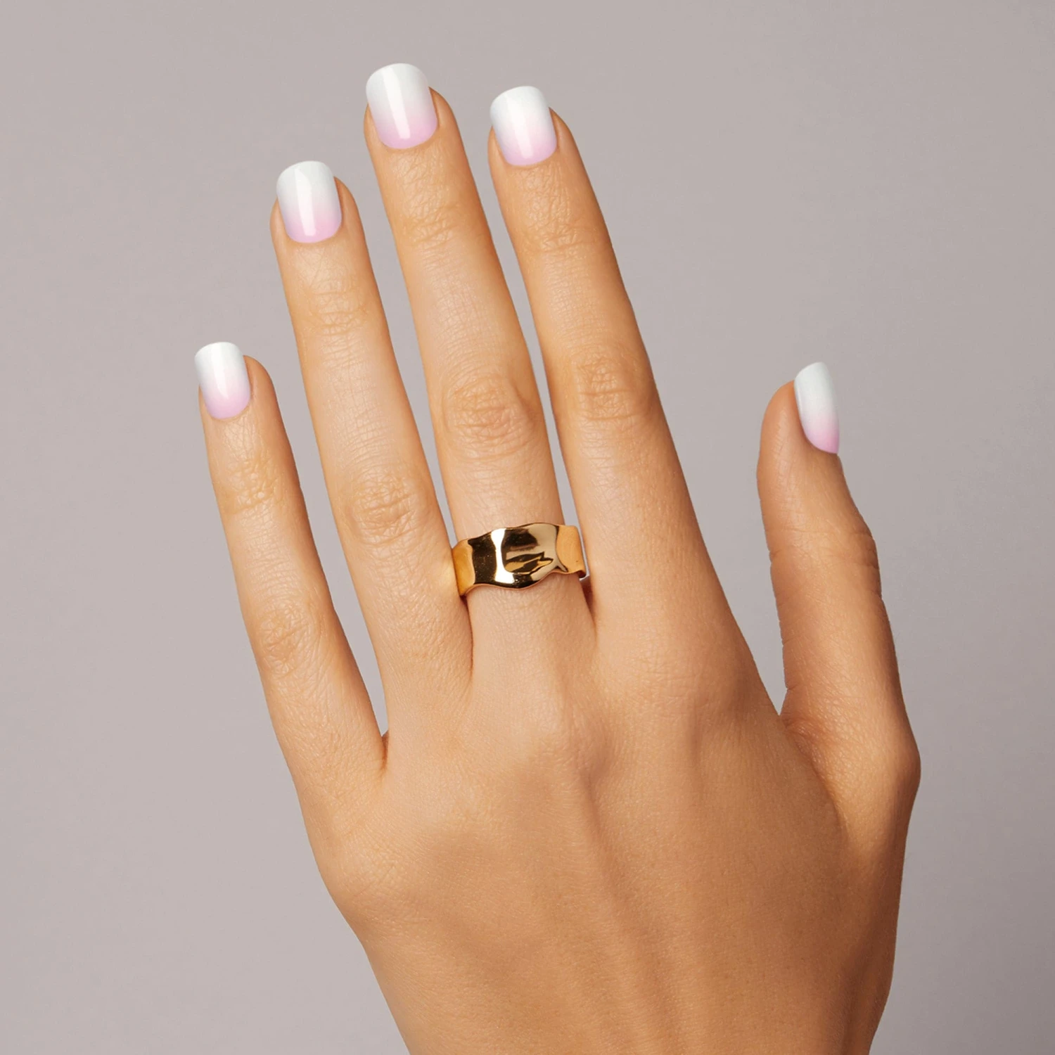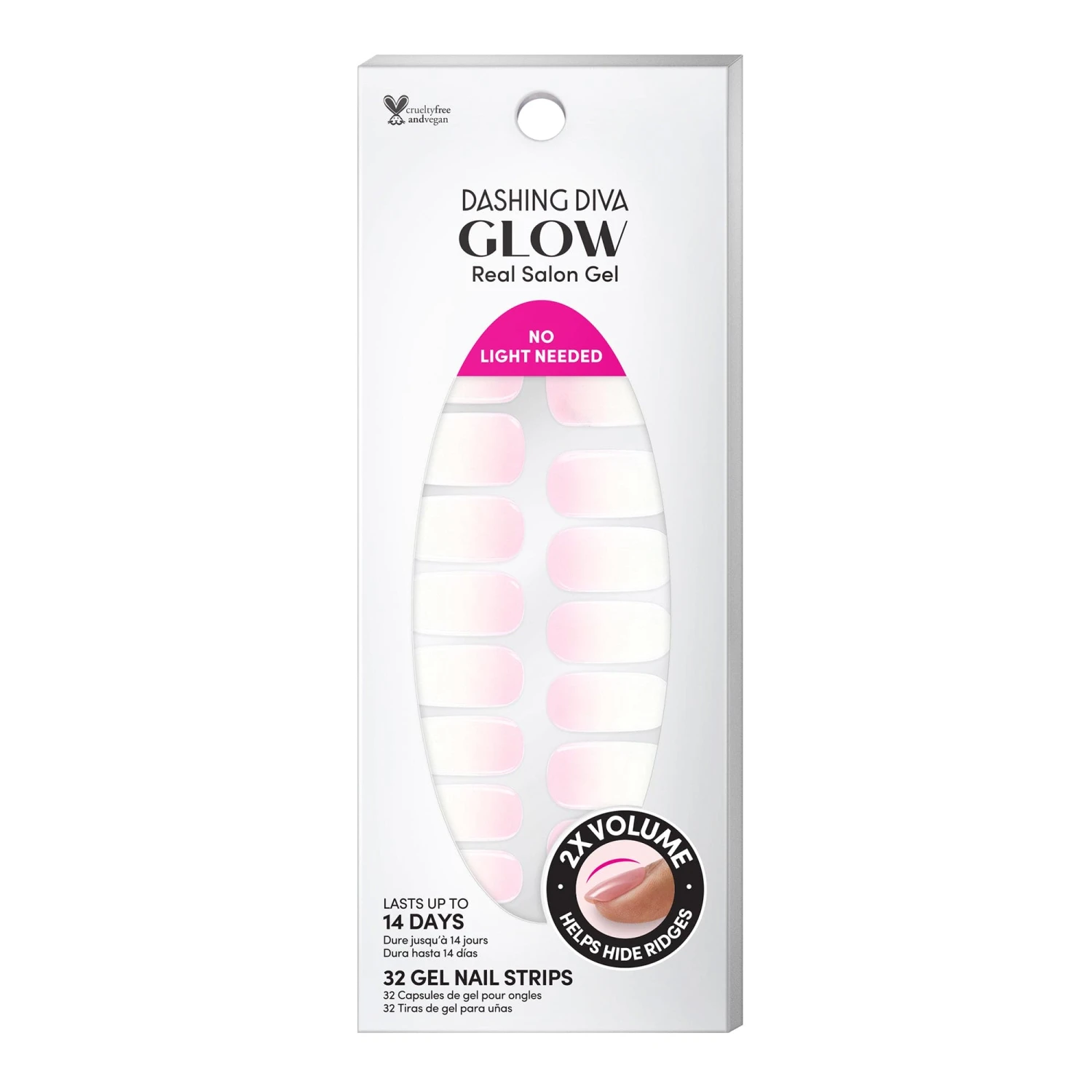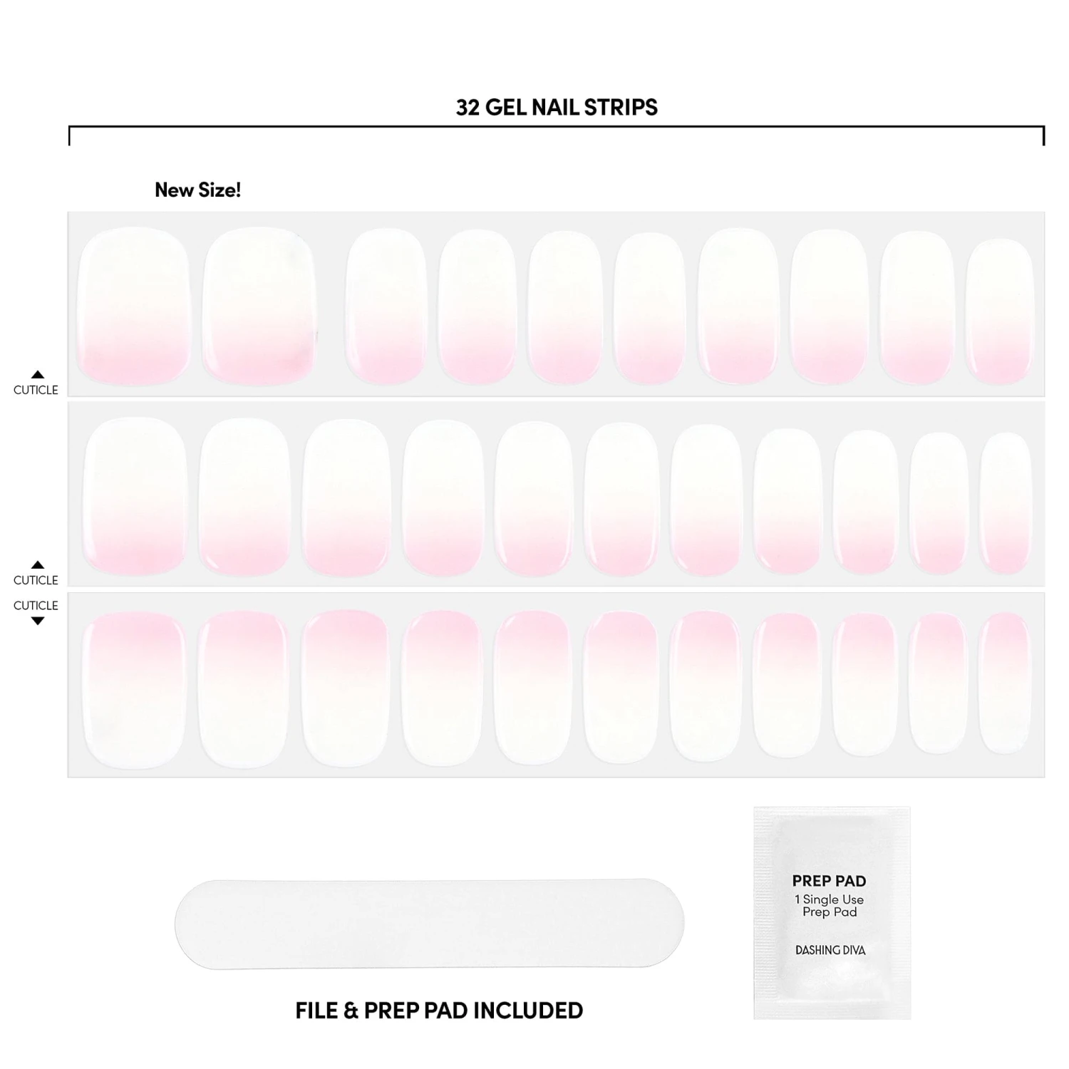 Delicate and ethereal with just one little detail. White-to-pink ombré gel nail strips with a double gel formula for an ultra smooth finish.