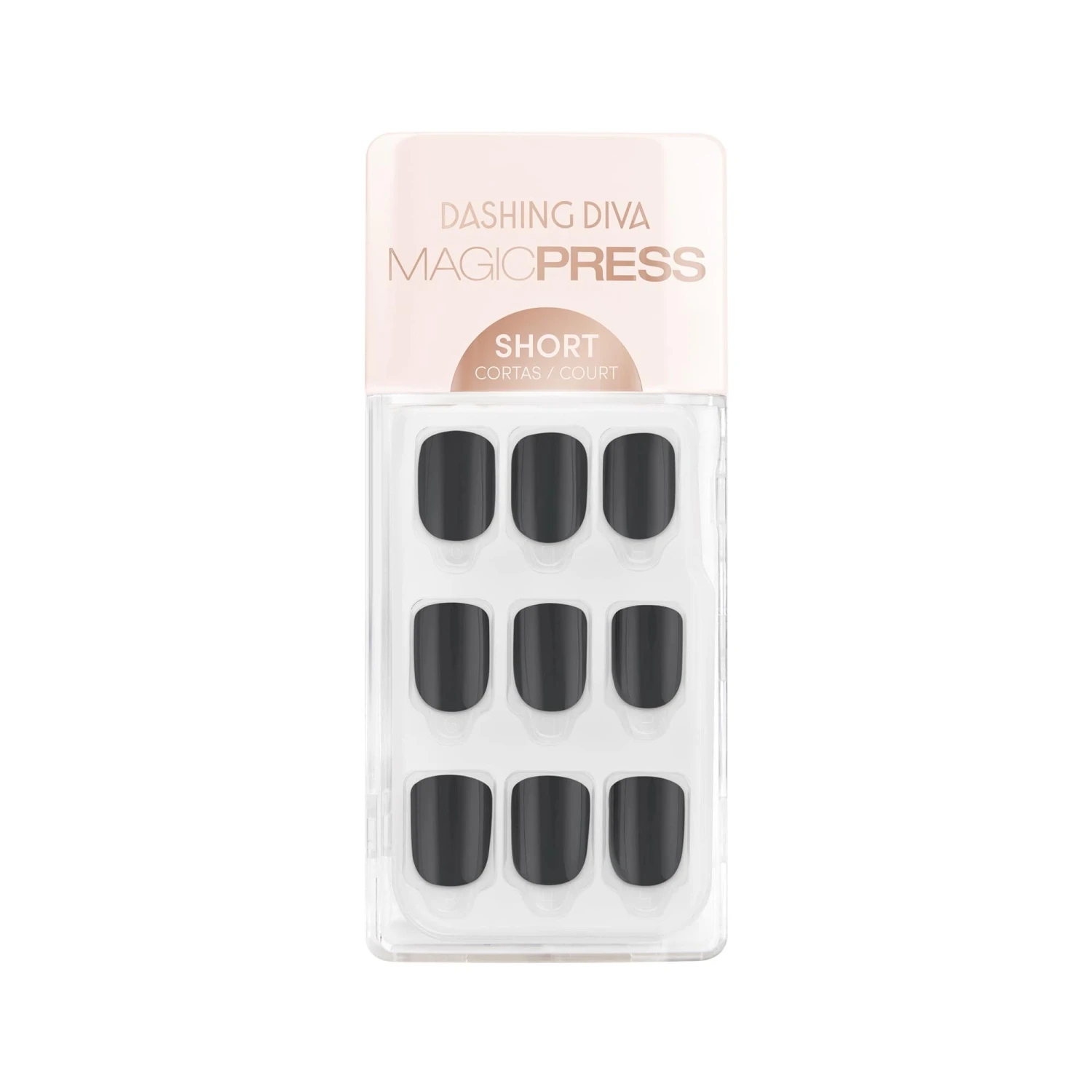 Short length, square shape, glossy finish press-on gel nails. Super hot but definitely not a burn out, grey manis bring all the heat in cooler weather.