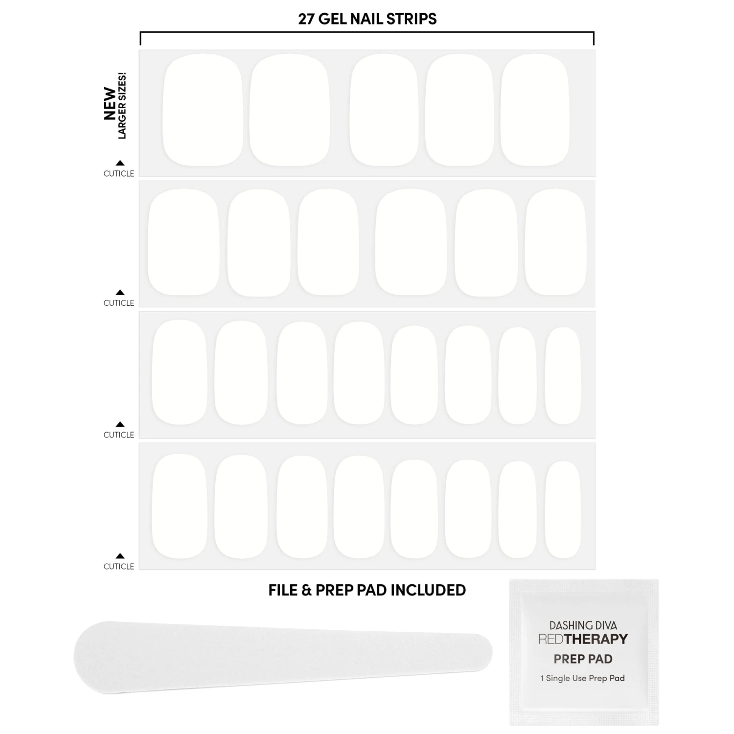 True white gel strips with a glossy, high shine finish. The perfect canvas to wear alongside your favorite designs or wear alone as its own chic mani!