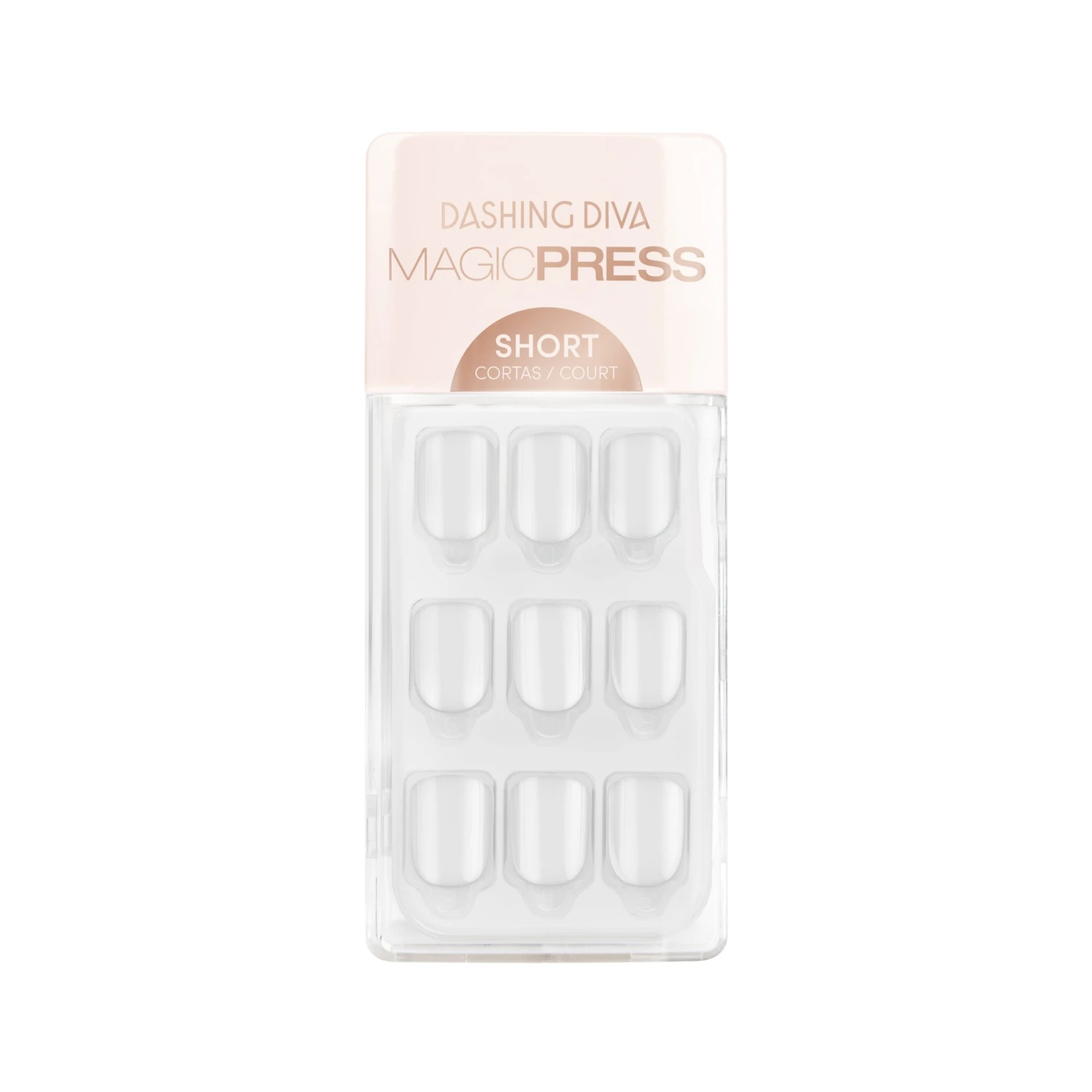 A subtle way to unleash your inner diva. Short length, square shape, glossy finish white press-on gel nails.